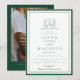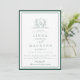 Elegant Navy Blue botanical crest monogram wedding Invitation