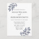 Elegant Navy Blue Botanical Wedding Invitation Postcard