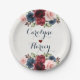 Elegant Navy Blue Burgundy Blush Flowers Wedding Paper Plates