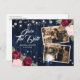 Elegant Navy Blue Burgundy Blush Wedding Photo Announcement Postcard