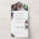 Elegant Navy Blue Burgundy Floral Photo Wedding All In One Invitation