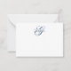 The monogram note card features a refined and minimalist design. It showcases a large, elegant cursive initial in navy blue, paired with a bold, uppercase name in black text, placed centrally across the initial.