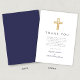 Elegant Navy Blue Cross Boy Baptism Thank You Card