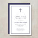 Elegant Navy Blue Cross Boy First Holy Communion Invitation