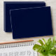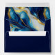 A navy blue wedding envelope featuring a faux gold, blue and white marbled design.