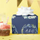Bold navy blue and white peony floral monogram wrapping paper for a modern winter wedding couple. An elegant botanical spray of green leaves unfolds around trendy handwritten initials for bridal party presents.