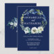 Elegant Navy Blue Floral Wreath Wedding Invitation