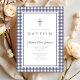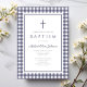 Elegant Navy Blue Gingham Boy Baptism Invitation