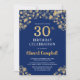 Elegant Navy Blue & Gold 30th Birthday Invitation