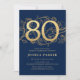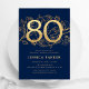 Elegant Navy Blue Gold 80th Birthday Invitation