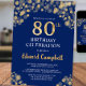 Elegant Navy Blue & Gold 80th Birthday Invitation