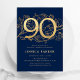 Elegant Navy Blue Gold 90th Birthday Invitation