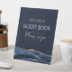 Make your special event even more memorable with this elegant Guestbook Pedestal Table Sign. This beautiful freestanding acrylic entrance sign invites guests to share their well wishes in the accompanying guestbook, while providing chic reception information. The blue background and modern agate design, paired with an elegant gold glitter accent, create a sophisticated look that is sure to impress your guests. The minimalist template highlights the sign's beauty, making it a perfect complement to any décor. Be sure to welcome your guests in style with this guestbook signage creating unforgettable memories that will last a lifetime.