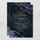 Elegant Navy Blue Gold Agate Monogram Wedding Invitation