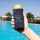 Elegant navy blue and gold agate decorates both sides of this modern retirement party seltzer can cooler. Chic and favor for a retiree to be celebrated by friends and family at the end of their career.