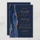 Elegant Navy Blue Gold Agate Wedding Invitation