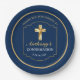 Elegant Navy Blue Gold Boys Confirmation Reception Paper Plates