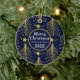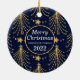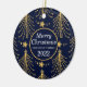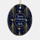 Elegant Navy Blue Gold Christmas Tree Star Pattern Ceramic Ornament