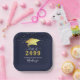 Elegant personalized navy blue and gold graduation party paper plates featuring a faux metallic gold foil graduation cap, gold confetti, handwritten script typography and class year with CONGRATULATIONS and your graduate's name against an editable navy blue background color you can change to a school color or coordinating party theme color by clicking EDIT USING DESIGN TOOL in the PERSONALIZE section. ASSISTANCE: For help with design modification/personalization, color change, resizing, transferring the design to another product or would like coordinating items, contact the designer BEFORE ORDERING via Zazzle Chat or makeitaboutyoustore@gmail.com.