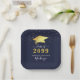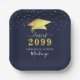 Elegant Navy Blue Gold Confetti Script Graduation Paper Plates