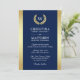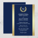 Elegant Navy Blue Gold Laurel Monogram Wedding Invitation