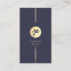 Elegant Navy Blue Gold Luxe Handwriting Monogram Business Card