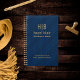 Elegant company planners featuring a sleek gold monogram logo on a refined blue patterned background. Ideal for employee organization, business gifts, or branded client giveaways. Personalize with your company details, colors, and fonts.