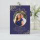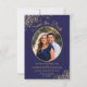 Elegant Navy Blue & Gold Oval Photo Fancy Wedding Save The Date