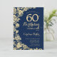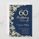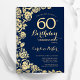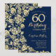 Elegant Navy Blue Gold Roses 60th Birthday Invitation