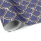 Elegant Navy Blue Gold Scallop Pattern Wrapping Paper