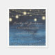 Elegant and chic navy blue with glittering gold string lights and lanterns personalized wedding event paper napkins. Text and fonts are customizable.