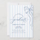 Celebrate your graduate's achievements with this elegant navy blue and white striped graduation announcement. Featuring a charming hand-drawn bow and the word 'graduate' in beautiful script, this design exudes sophistication and joy. The classic vertical stripes in soft blue and white create a timeless backdrop for your graduate's photo and announcement details. Perfect for announcing high school or college graduations, this invitation sets a refined tone for your special celebration. Make this announcement uniquely yours by adding your graduate's name, school, and graduation year.