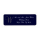 Monogram Wedding Invitation Return Address Labels. Return Address Label Design by Elke Clarke ©2010. Customize with your monogram initial, name and address details. Choose the background color and monogram color too. Shown with navy blue and gray initial in an elegant script font. Perfect as address labels for the front of your RSVP envelopes or return address labels for your wedding invitations.