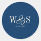 Elegant navy blue initial wedding couples classic round sticker