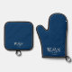 Elegant navy blue initial wedding couples oven mitt & pot holder set