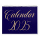 Make your 2025 both stylish and organized with this Navy Blue and Gold Minimalist Script Calendar.