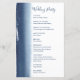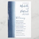 Modern and creative wedding program featuring a simple design with a navy blue watercolor brushstroke on the left side, over a white background. Add your ceremony events to the front and your wedding party to the back. This unique design is great for an artistic couple. These cheap wedding programs are printed on sheets of paper for a budget friendly option.
