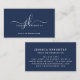 Modern, stylish professional business card with chic handwritten script monogram initials and name in your choice of colors (shown in navy blue). CHANGES: Change the text font style, color, size and placement and/or the background color in EDIT. ASSISTANCE: For help with design modification or personalization, transferring the design to another product or if you would like coordinating items, contact the designer BEFORE ORDERING via the Zazzle Chat MESSAGE tab or email makeitaboutyoustore@gmail.com.