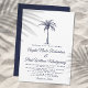 Elegant Navy Blue Palm Tree Formal Beach Wedding Invitation
