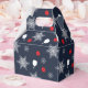Elegant Navy blue 💙 pickleball Christmas Favor Box. White pickleball paddles, red pickleballs and a lot of cute white snow flakes on navy blue background.