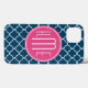 Elegant Navy Blue Quatrefoil with Pink Monogram Case-Mate iPhone Case