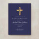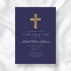 Elegant Navy Blue Religious Cross Boy Confirmation Invitation