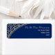 Luxury, modern, elegant navy blue return address label, with gold floral swirls. Perfect choice for glam weddings!