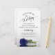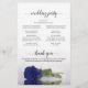 These wedding programs are elegant and tasteful, while still being budget friendly. The design features a single long-stemmed navy blue colored rose lying on its side, reflecting in a pool of water with waves and ripples. The typography features lacy black script calligraphy, and there is room for details on the ceremony, the bridal party, and a short thank you.