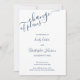 Elegant and simple Change of Plans card to notify guests of your wedding postponement. The design is in navy blue and white with hand lettered script typography for the names of the bride and groom and the words "change of plans". The sample wording reads "The wedding of [your names] has been postponed. We will let you know as soon as we set a new date. It was a difficult decision and we thank you for your love and understanding". The template is set up ready for you to add your names and edit as much of the text as you wish.
