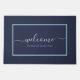 Elegant welcome Doormat with a white script on a navy blue background. Personalize with your family name or text.