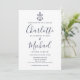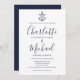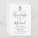 Elegant Navy Blue Script Nautical Anchor Wedding Invitation