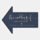 Elegant Navy Blue Script Wedding Direction Arrow Sign