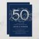 Elegant Navy Blue Silver 50th Birthday Invitation