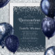 Elegant Navy Blue Silver Confetti Quinceañera Invitation